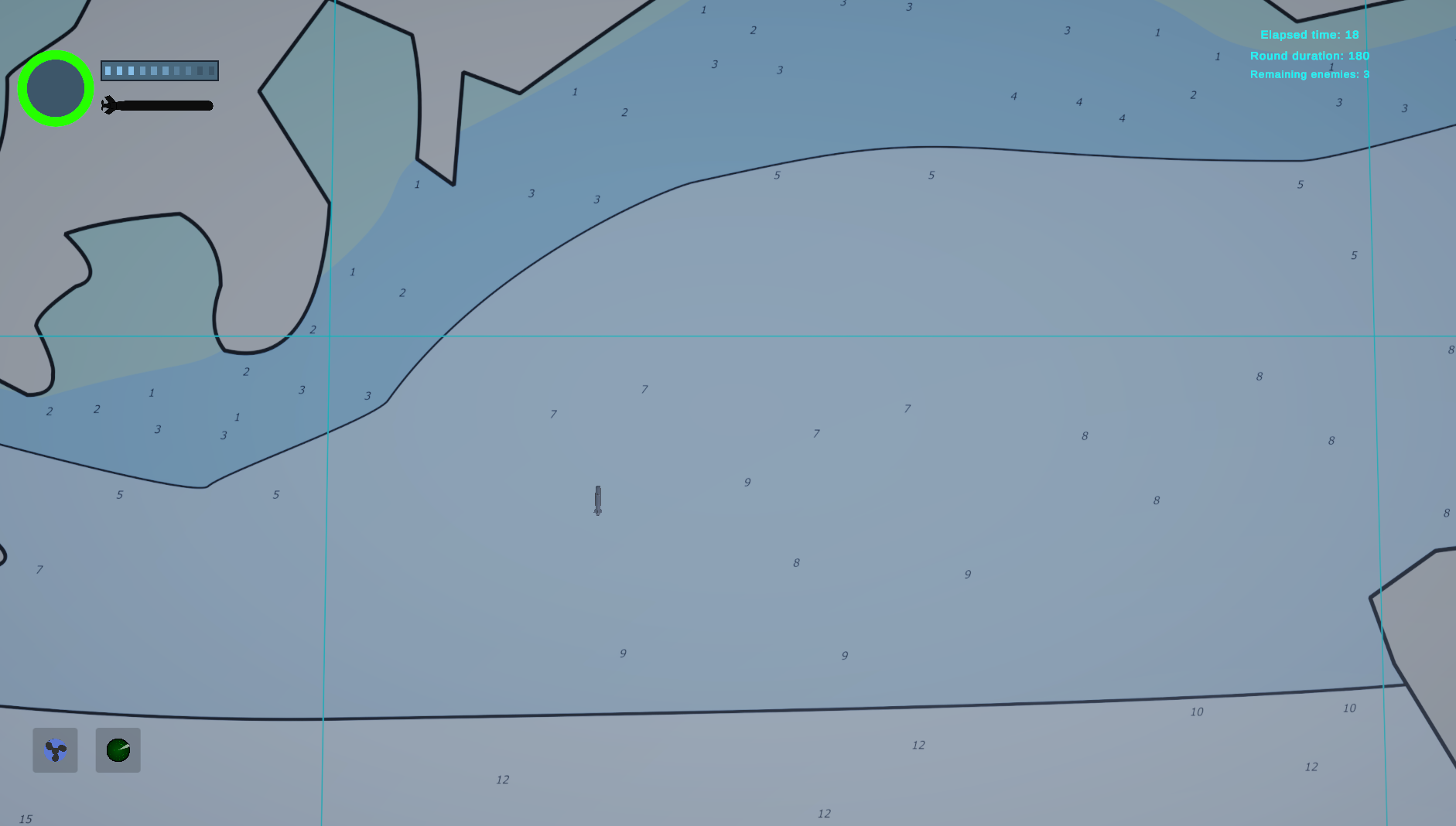 Game Off 2025 theme was "Waves". This game speaks about sonic waves that detect threats under the oceans. Inadvertently, the way the game enemies are launching bursts of torpedoes also contribute to the feeling of a wave of threats...
